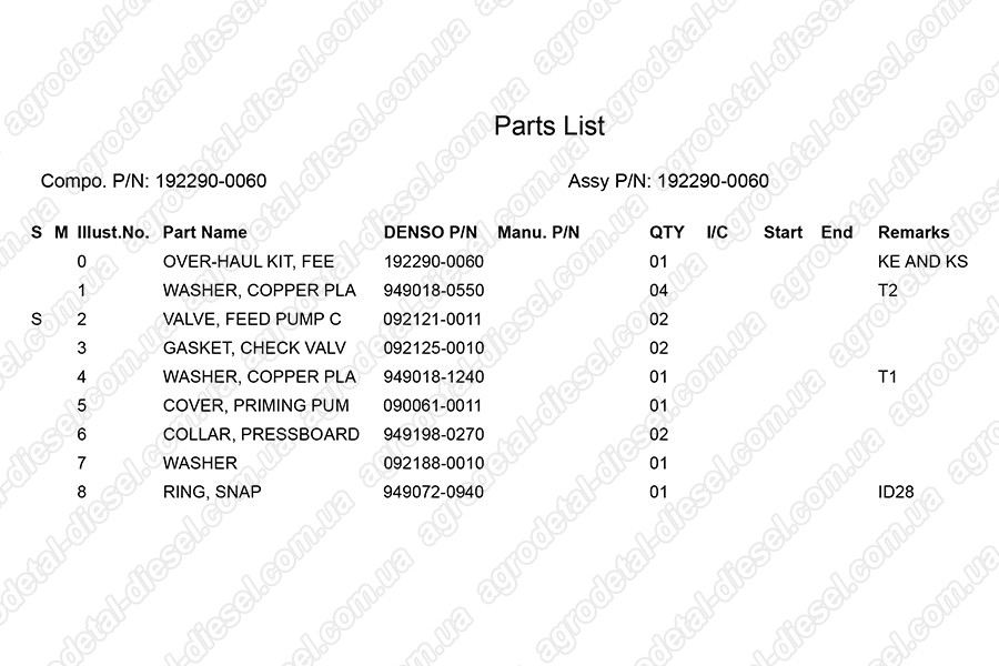Ремкомплект 192290-0060 Denso