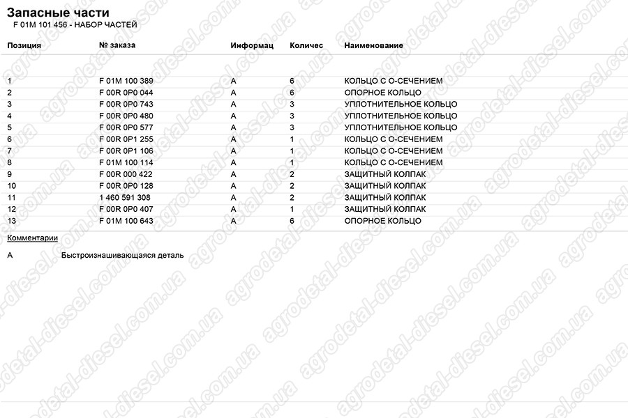 Ремкомплект F01M101456 Bosch